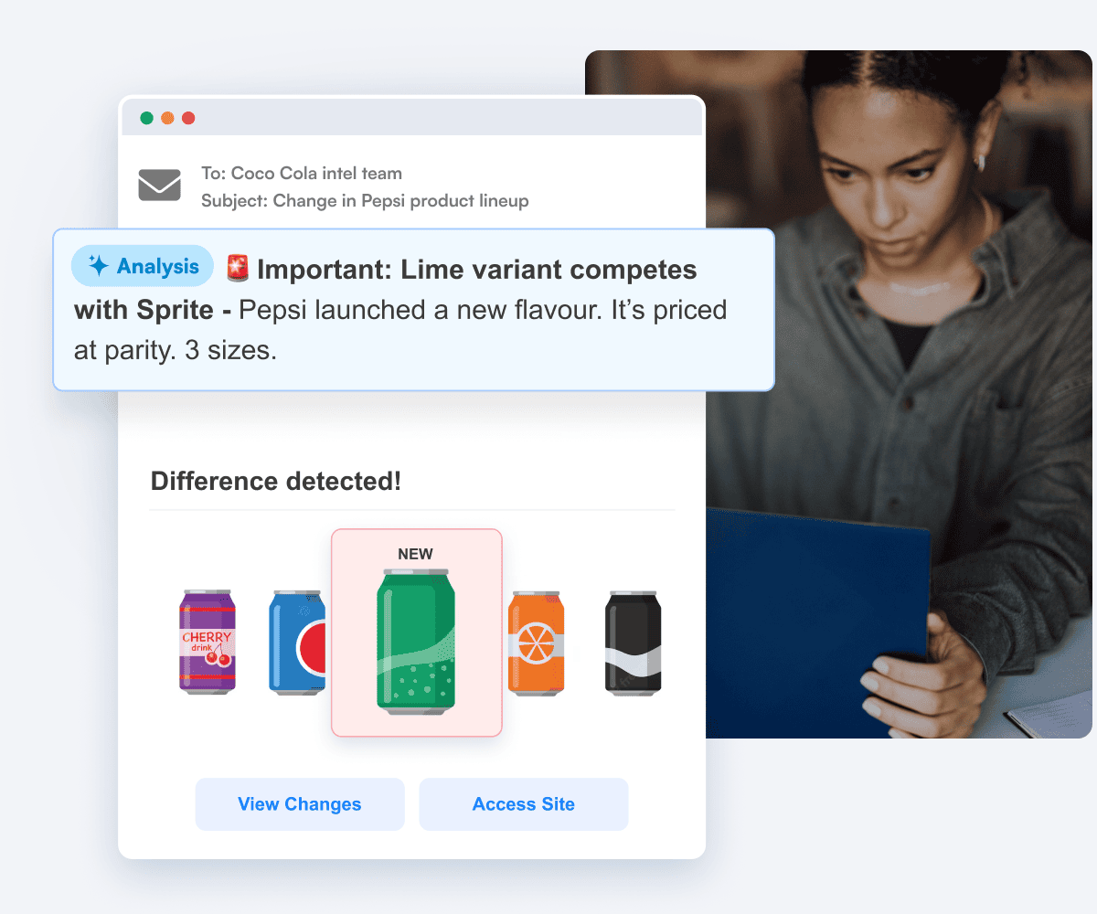 Our team will take care of setting up your monitors, so you can stay one step ahead of the exact competitor changes you’re after - just send us the pages you care about.